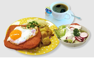 Reichhaltiges Frühstücksangebot! Salate, Dessert, Kuchen usw.